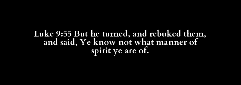 Luke 9:55 But he turned, and rebuked them, and said, Ye know not what manner of spirit ye are of.