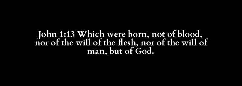 John 1:13 Which were born, not of blood, nor of the will of the flesh, nor of the will of man, but of God.