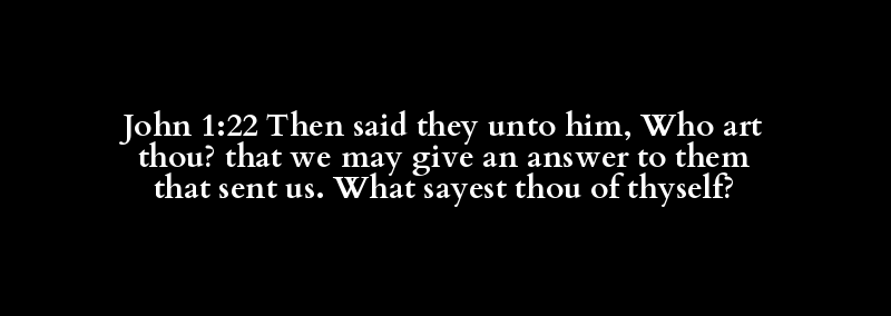 John 1:22 Then said they unto him, Who art thou? that we may give an answer to them that sent us. What sayest thou of thyself?