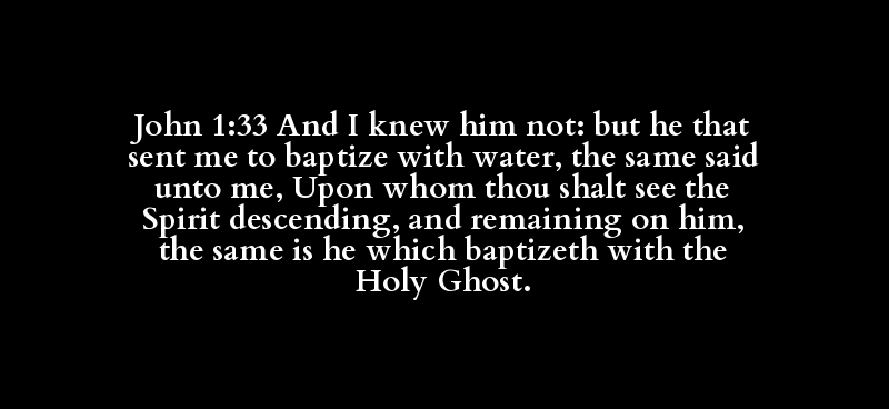 John 1:33 And I knew him not: but he that sent me to baptize with water, the same said unto me, Upon whom thou shalt see the Spirit descending, and remaining on him, the same is he which baptizeth with the Holy Ghost.