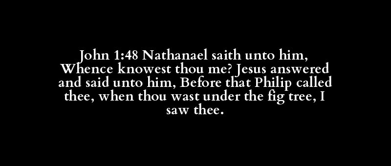 John 1:48 Nathanael saith unto him, Whence knowest thou me? Jesus answered and said unto him, Before that Philip called thee, when thou wast under the fig tree, I saw thee.