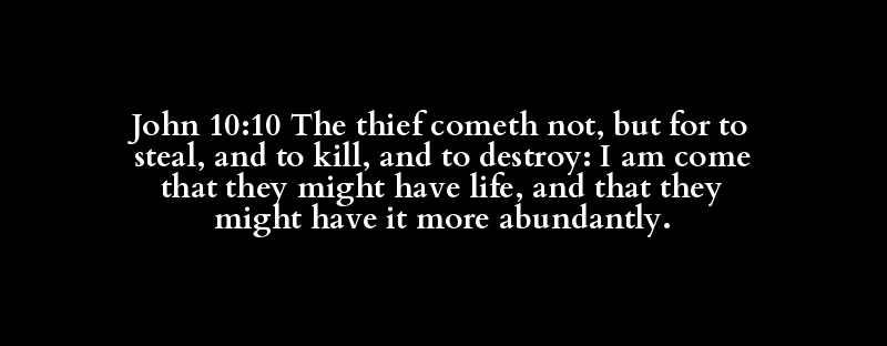 John 10:10 The thief cometh not, but for to steal, and to kill, and to destroy: I am come that they might have life, and that they might have it more abundantly.