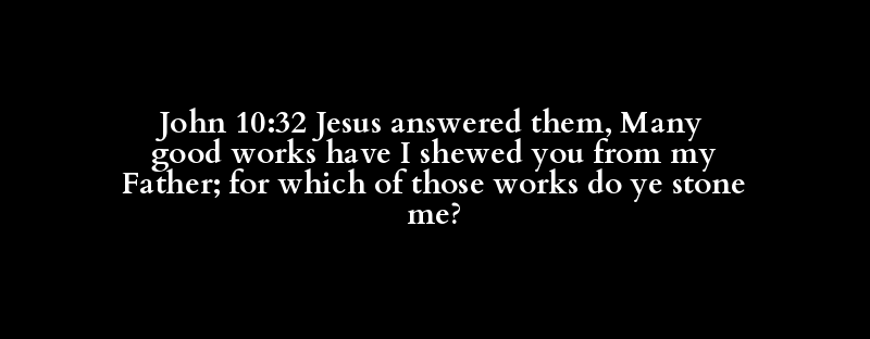 John 10:32 Jesus answered them, Many good works have I shewed you from my Father; for which of those works do ye stone me?
