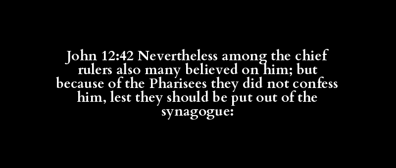 John 12:42 Nevertheless among the chief rulers also many believed on him; but because of the Pharisees they did not confess him, lest they should be put out of the synagogue: