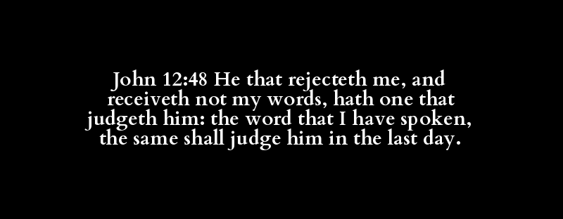 John 12:48 He that rejecteth me, and receiveth not my words, hath one that judgeth him: the word that I have spoken, the same shall judge him in the last day.