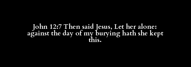 John 12:7 Then said Jesus, Let her alone: against the day of my burying hath she kept this.