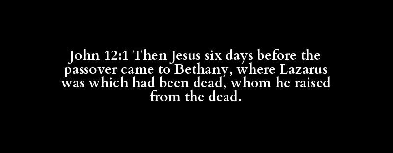 John 12:1 Then Jesus six days before the passover came to Bethany, where Lazarus was which had been dead, whom he raised from the dead.