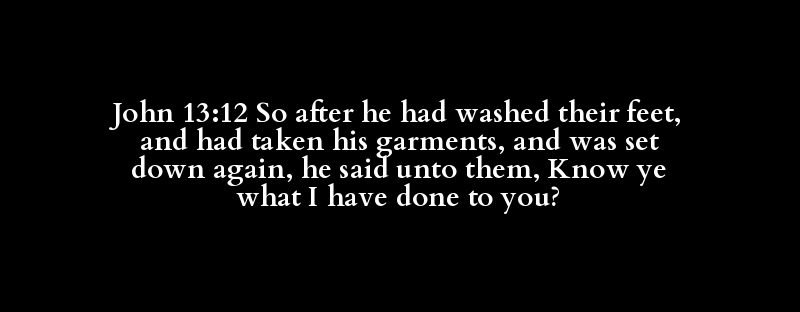 John 13:12 So after he had washed their feet, and had taken his garments, and was set down again, he said unto them, Know ye what I have done to you?