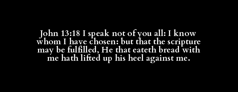 | λέγω | οὐ | περί | ὑμῶν | πᾶς | ἐγώ | εἴδω | ὅς | ἐκλέγομαι | ἀλλά | ἵνα | γραφή | πληρόω | τρώγω | ἄρτος | μετά | ἐμοῦ | ἐπαίρω | αὐτός | πτέρνα | ἐπί | ἐμέ |