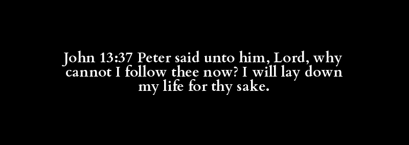 John 13:37 Peter said unto him, Lord, why cannot I follow thee now? I will lay down my life for thy sake.