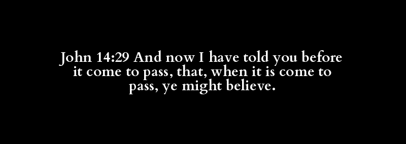 John 14:29 And now I have told you before it come to pass, that, when it is come to pass, ye might believe.