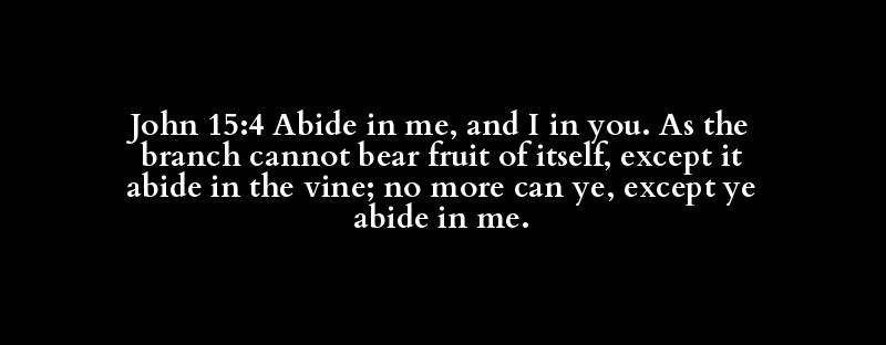 John 15:4 Abide in me, and I in you. As the branch cannot bear fruit of itself, except it abide in the vine; no more can ye, except ye abide in me.