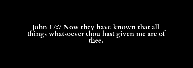 John 17:7 Now they have known that all things whatsoever thou hast given me are of thee.