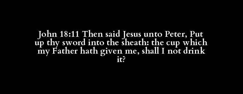 John 18:11 Then said Jesus unto Peter, Put up thy sword into the sheath: the cup which my Father hath given me, shall I not drink it?