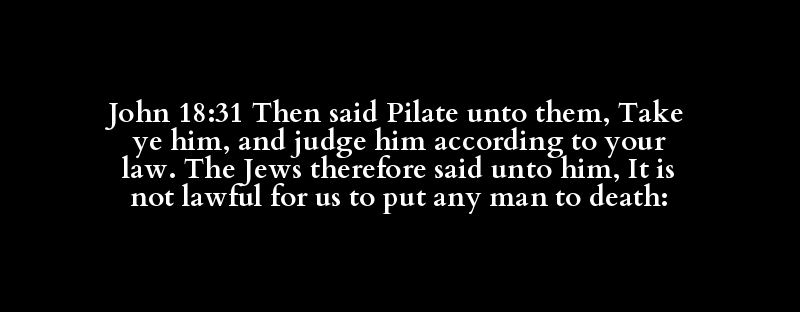 John 18:31 Then said Pilate unto them, Take ye him, and judge him according to your law. The Jews therefore said unto him, It is not lawful for us to put any man to death: