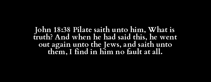 John 18:38 Pilate saith unto him, What is truth? And when he had said this, he went out again unto the Jews, and saith unto them, I find in him no fault at all.