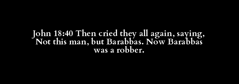 John 18:40 Then cried they all again, saying, Not this man, but Barabbas. Now Barabbas was a robber.