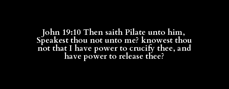 John 19:10 Then saith Pilate unto him, Speakest thou not unto me? knowest thou not that I have power to crucify thee, and have power to release thee?