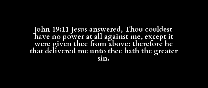 John 19:11 Jesus answered, Thou couldest have no power at all against me, except it were given thee from above: therefore he that delivered me unto thee hath the greater sin.
