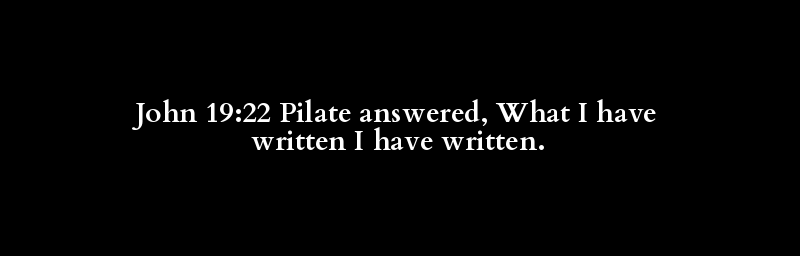 John 19:22 Pilate answered, What I have written I have written.