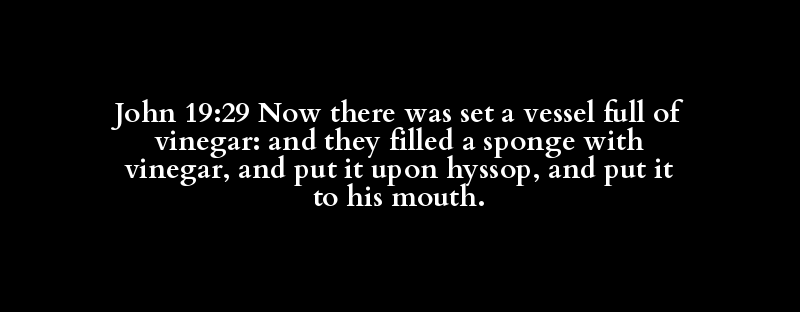 John 19:29 Now there was set a vessel full of vinegar: and they filled a sponge with vinegar, and put it upon hyssop, and put it to his mouth.