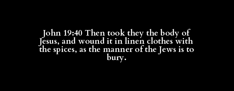 John 19:40 Then took they the body of Jesus, and wound it in linen clothes with the spices, as the manner of the Jews is to bury.
