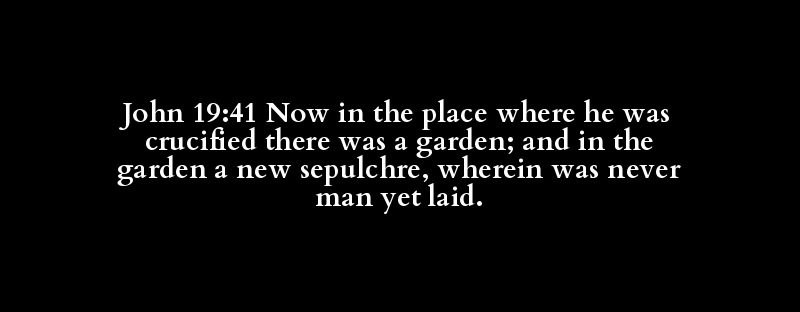 John 19:41 Now in the place where he was crucified there was a garden; and in the garden a new sepulchre, wherein was never man yet laid.