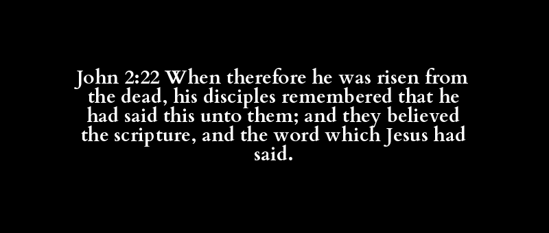 John 2:22 When therefore he was risen from the dead, his disciples remembered that he had said this unto them; and they believed the scripture, and the word which Jesus had said.