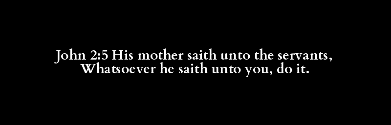 John 2:5 His mother saith unto the servants, Whatsoever he saith unto you, do it.