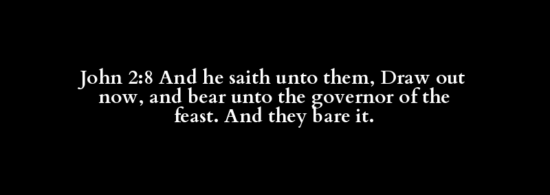 John 2:8 And he saith unto them, Draw out now, and bear unto the governor of the feast. And they bare it.