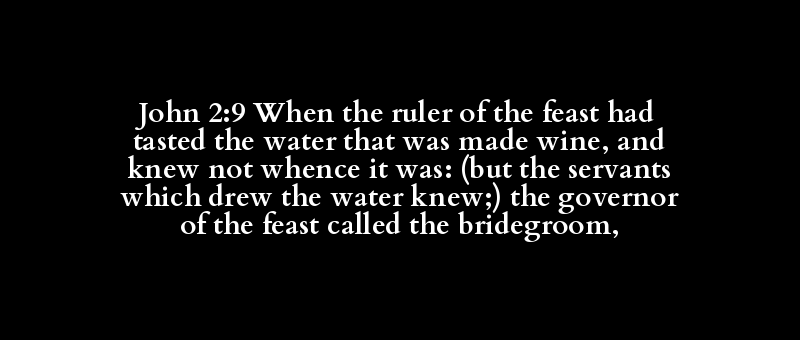 John 2:9 When the ruler of the feast had tasted the water that was made wine, and knew not whence it was: (but the servants which drew the water knew;) the governor of the feast called the bridegroom,