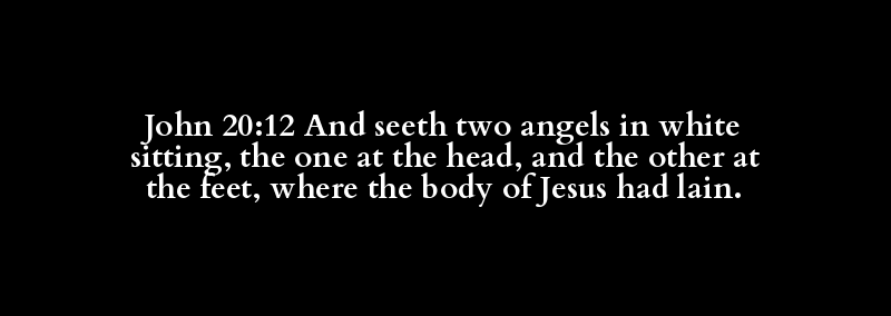 John 20:12 And seeth two angels in white sitting, the one at the head, and the other at the feet, where the body of Jesus had lain.