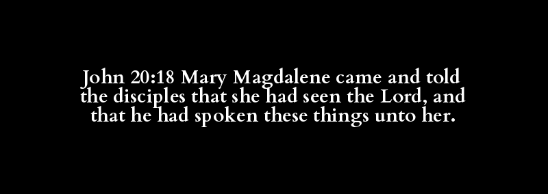 John 20:18 Mary Magdalene came and told the disciples that she had seen the Lord, and that he had spoken these things unto her.