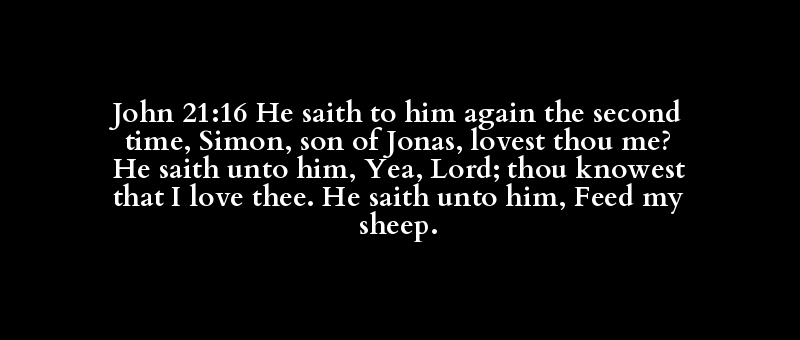 John 21:16 He saith to him again the second time, Simon, son of Jonas, lovest thou me? He saith unto him, Yea, Lord; thou knowest that I love thee. He saith unto him, Feed my sheep.
