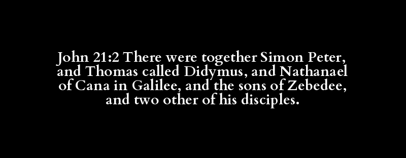 | ἦν | ὁμοῦ | Σίμων | Πέτρος | καί | Θωμᾶς | λέγω | Δίδυμος | καί | Ναθαναήλ | ἀπό | Κανᾶ | Γαλιλαία | καί | ὁ | Ζεβεδαῖος | καί | δύο | ἄλλος | ἐκ | αὐτός | μαθητής |