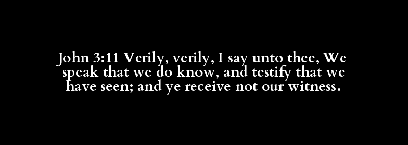 John 3:11 Verily, verily, I say unto thee, We speak that we do know, and testify that we have seen; and ye receive not our witness.