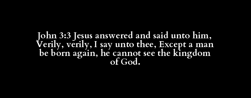 John 3:3 Jesus answered and said unto him, Verily, verily, I say unto thee, Except a man be born again, he cannot see the kingdom of God.