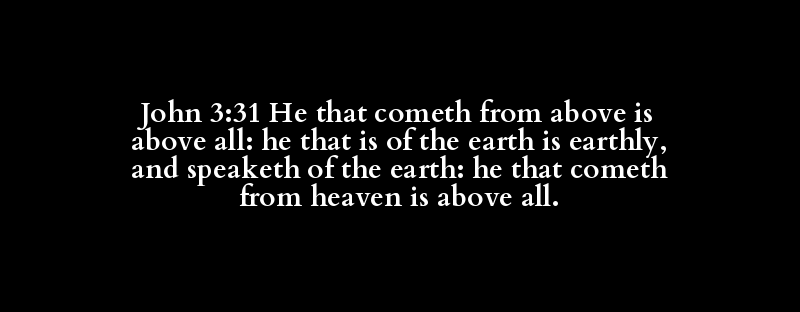 John 3:31 He that cometh from above is above all: he that is of the earth is earthly, and speaketh of the earth: he that cometh from heaven is above all.