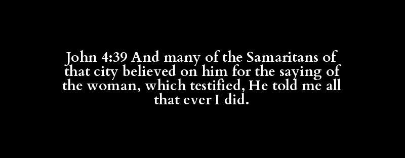 John 4:39 And many of the Samaritans of that city believed on him for the saying of the woman, which testified, He told me all that ever I did.