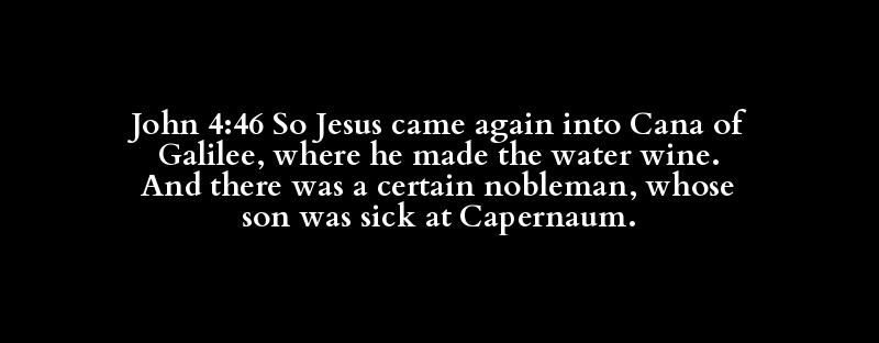 John 4:46 So Jesus came again into Cana of Galilee, where he made the water wine. And there was a certain nobleman, whose son was sick at Capernaum.