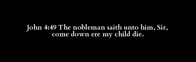 John 4:49 The nobleman saith unto him, Sir, come down ere my child die.