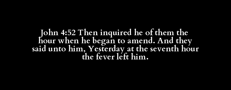 John 4:52 Then inquired he of them the hour when he began to amend. And they said unto him, Yesterday at the seventh hour the fever left him.