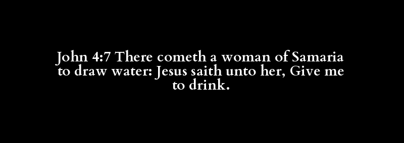 John 4:7 There cometh a woman of Samaria to draw water: Jesus saith unto her, Give me to drink.