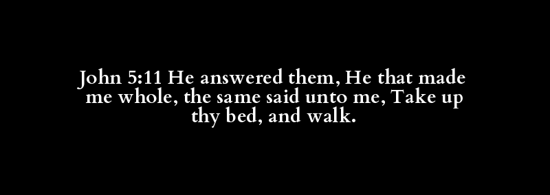 John 5:11 He answered them, He that made me whole, the same said unto me, Take up thy bed, and walk.