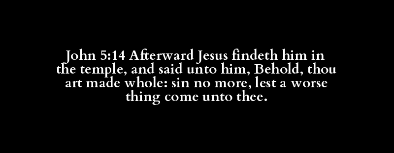 John 5:14 Afterward Jesus findeth him in the temple, and said unto him, Behold, thou art made whole: sin no more, lest a worse thing come unto thee.