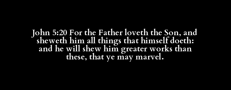 John 5:20 For the Father loveth the Son, and sheweth him all things that himself doeth: and he will shew him greater works than these, that ye may marvel.