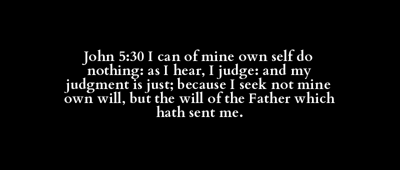 John 5:30 I can of mine own self do nothing: as I hear, I judge: and my judgment is just; because I seek not mine own will, but the will of the Father which hath sent me.
