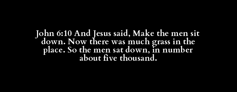 John 6:10 And Jesus said, Make the men sit down. Now there was much grass in the place. So the men sat down, in number about five thousand.