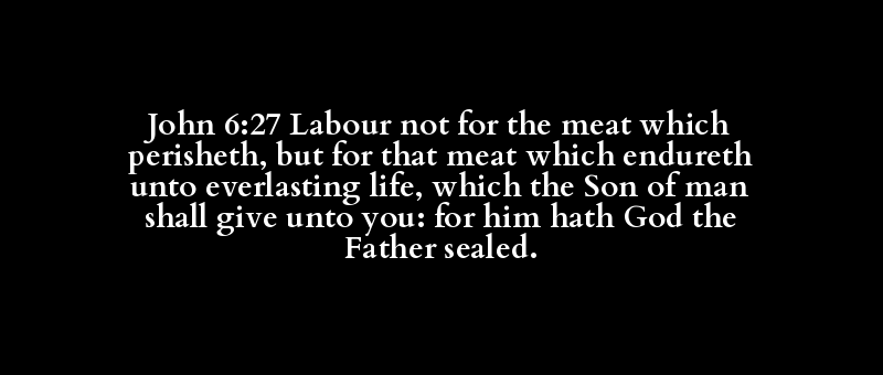 John 6:27 Labour not for the meat which perisheth, but for that meat which endureth unto everlasting life, which the Son of man shall give unto you: for him hath God the Father sealed.