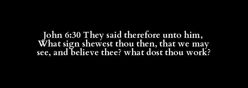 John 6:30 They said therefore unto him, What sign shewest thou then, that we may see, and believe thee? what dost thou work?